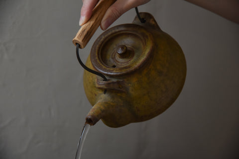 市川孝是日本著名的陶藝家,本身對台灣茶藝也有研究,因此其作品無論形制或釉面,對於茶人而言都相當實用。此款煮水壺為陶製,內外皆有上釉,煮出來的水口感圓潤適口。