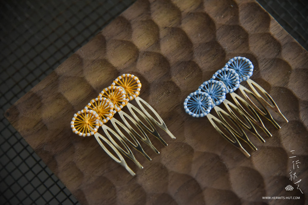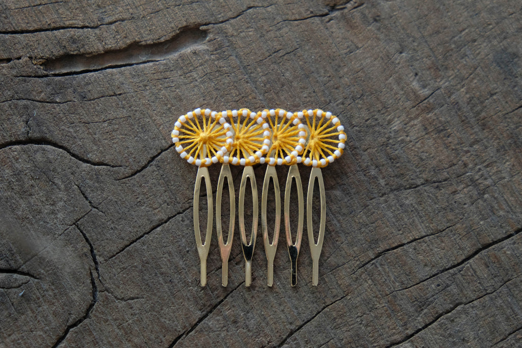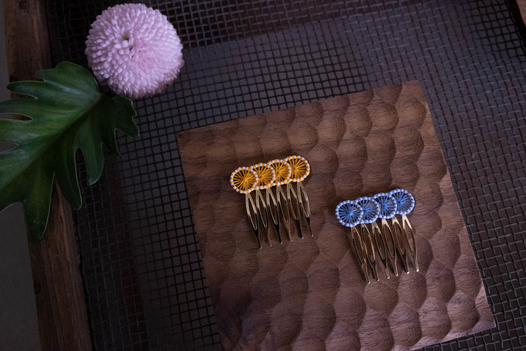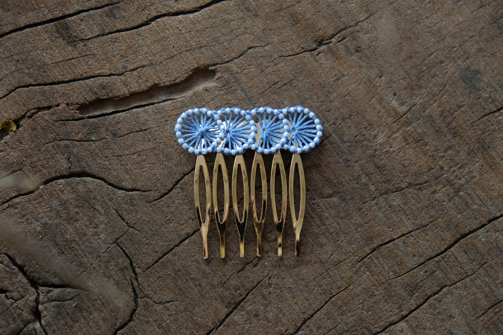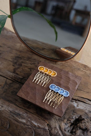 髮梳是舊時代的產物,在此之前我只有模糊的幼童時期印象,好似看過化妝台前媽媽整理頭髮時使用,沒想過長大後竟對髮梳產生了興趣,是風花在耳環項目之外第一個拓展的類別,成品一誕生便像打開新世界,自己也著迷。