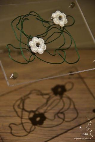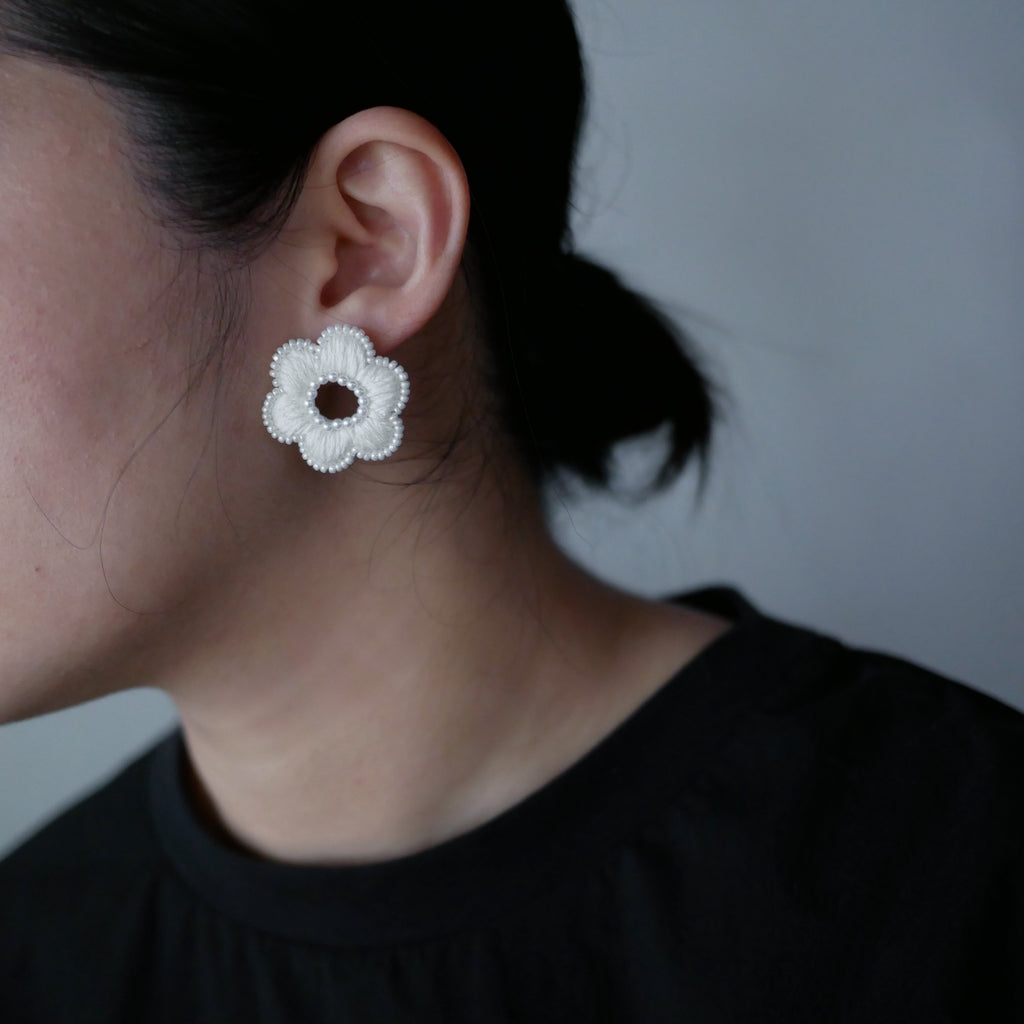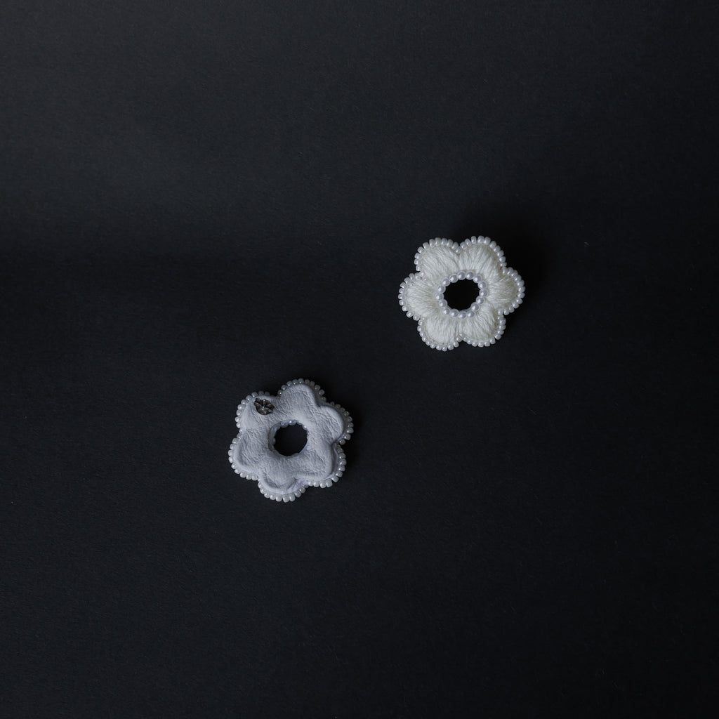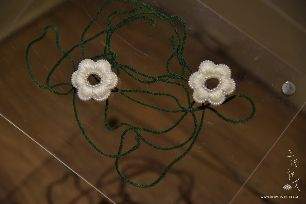 下了框繡會隨著繡布自然微微變形,變成「有機體」模樣,看這每一朵有些差異的形狀,越是看越是可愛、越是真實,「有些不一樣」是意外的美麗。畢竟怎麼樣製作,都不會比存在自然的花朵美麗。